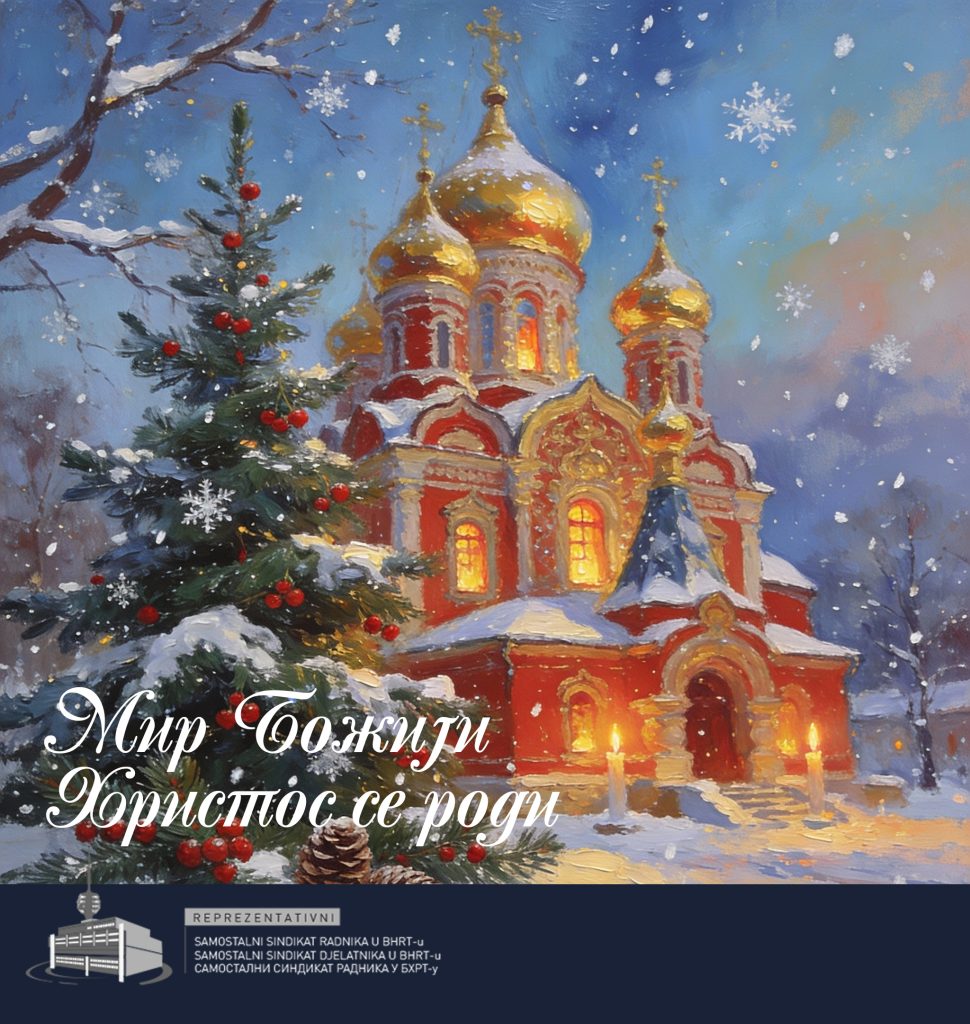06/01/2026Sretan i blagoslovljen Božić svim članovima Samostalnog sindikata radnika u BHRT-u pravoslavne vjeroispovijesti. Neka vam Božić donese zdravlje, mir i Božji blagoslov.